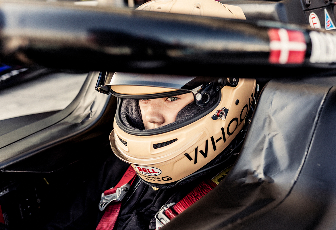 Hun var 11 år, omtrent dobbelt så gammel som den gennemsnitlige racerkører, da hun første gang trådte på en speeder. Det var under den første corona-nedlukning, da al håndbold var aflyst. En dag i slutningen af juni, kort efter han skulle have kørt Le Mans, ringede Jan Magnussen til hendes far og spurgte, om de ikke skulle tage ungerne med ud på Roskilde Racing Center. Han kendte Preben, som havde banen, og han kunne nok få ham til at åbne den. Dels var det jo udendørs, dels kunne en hjelm fungere som en slags mundbind. Banen lå kun et kvarter fra deres hjem, og Jan Magnussens søn Luca havde en Mini 60-gokart, de kunne køre i.