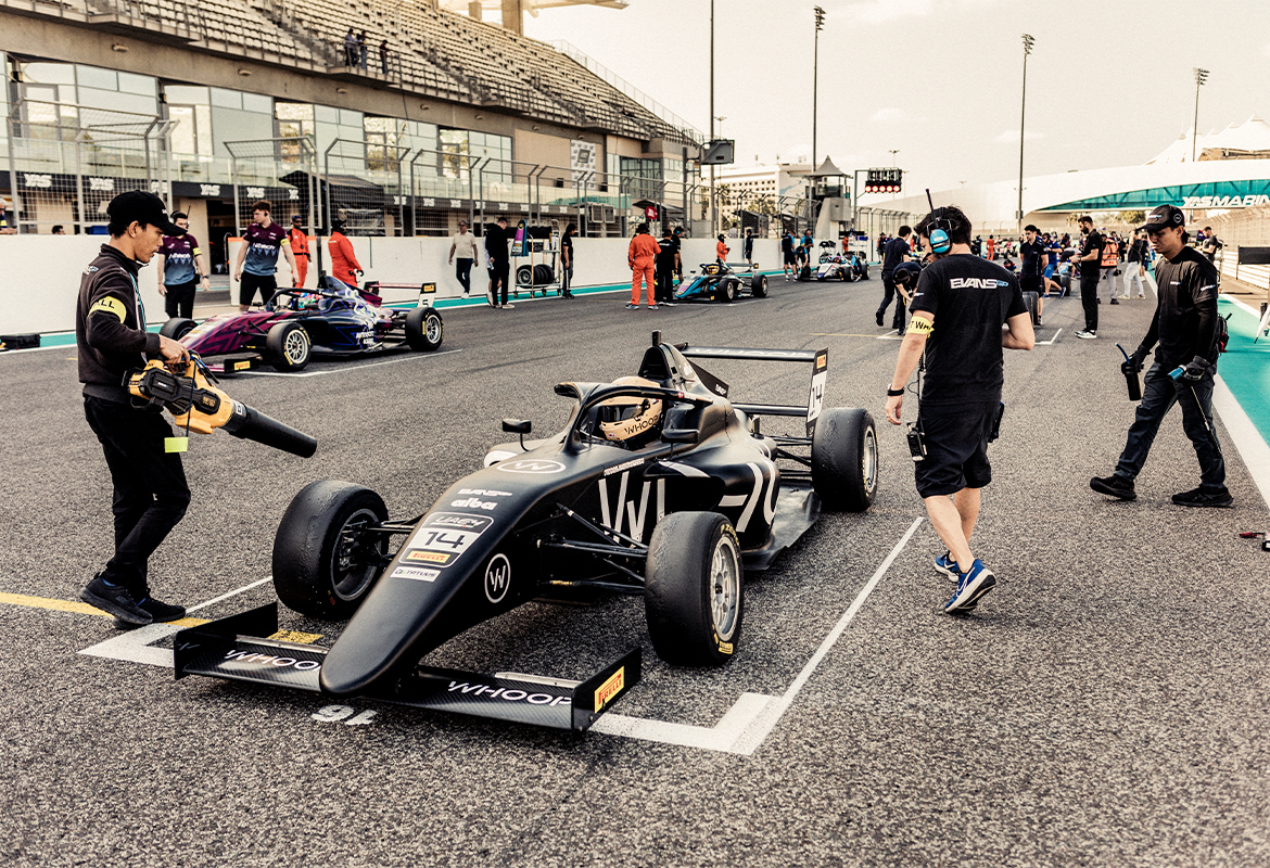 Et Formel 4-løb starter med en formation lap, hvor dækkene varmes op. Bilerne kører slalom og gasser op og ned. Derefter finder de deres grid-pladser. Paraplyer foldes ud over kørernes cockpits for at skærme for solen. Mekanikerne køler motoren med en løvblæser fra byggemarkedet og strammer hjulboltene en sidste gang. De bevæger sig mellem bilerne sammen med kamerafolk og løbsansvarlige, indtil de får tegn, og kørebanen tømmes.