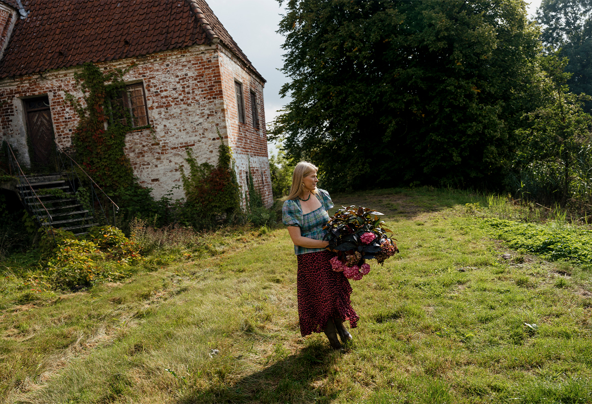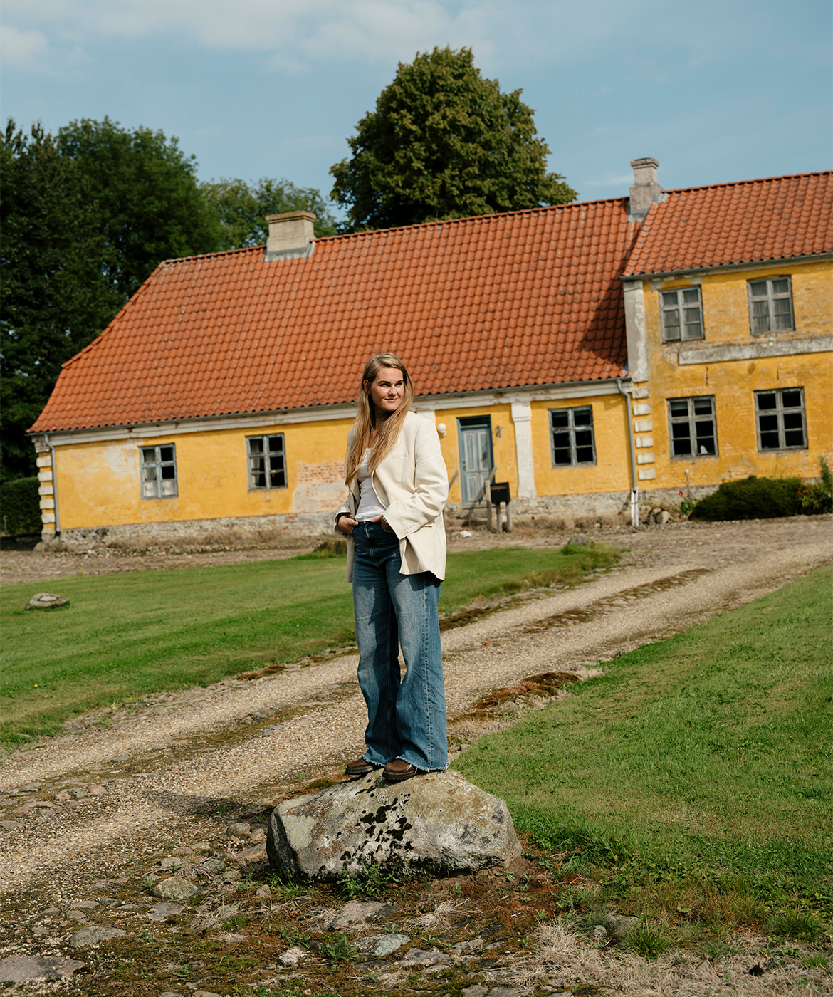Liselund fylder meget i mit liv. Den gamle, fredede parcelgård ligger kun fire kilometer fra vores hjem, og jeg bruger en stor del af min tid på den. De okkergule bygninger med stråtag samler sig om en gårdsplads brolagt med kampesten, markerne omkring er omkranset af høje træer, og det føles, som om tiden går lidt langsommere her. Liselund står i dag tom og præget af forfald, men forhåbentlig ikke meget længere. Min drøm er at skabe et moderne hverdagsrefugium, et levende og æstetisk helle, hvor mennesker kan finde ro, styrke, inspiration og fællesskab. Et sted, hvor trivsel får plads – og hvor kulturarven ikke blot bevares, men bringes i spil.