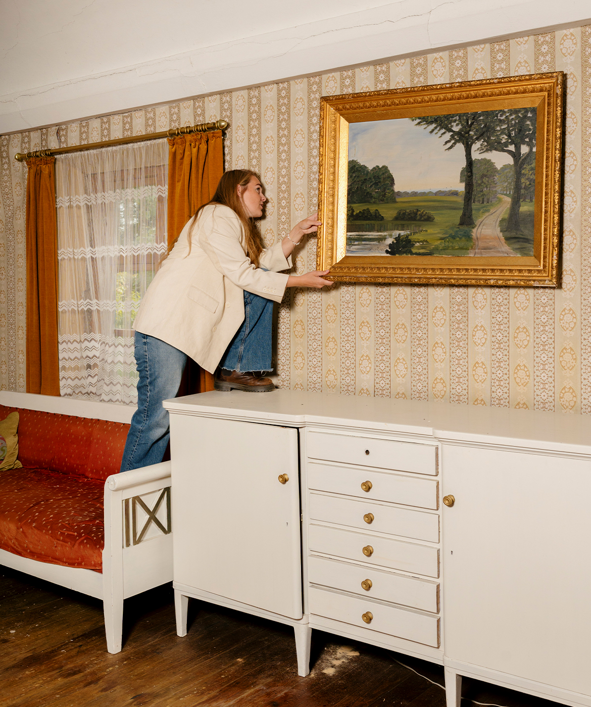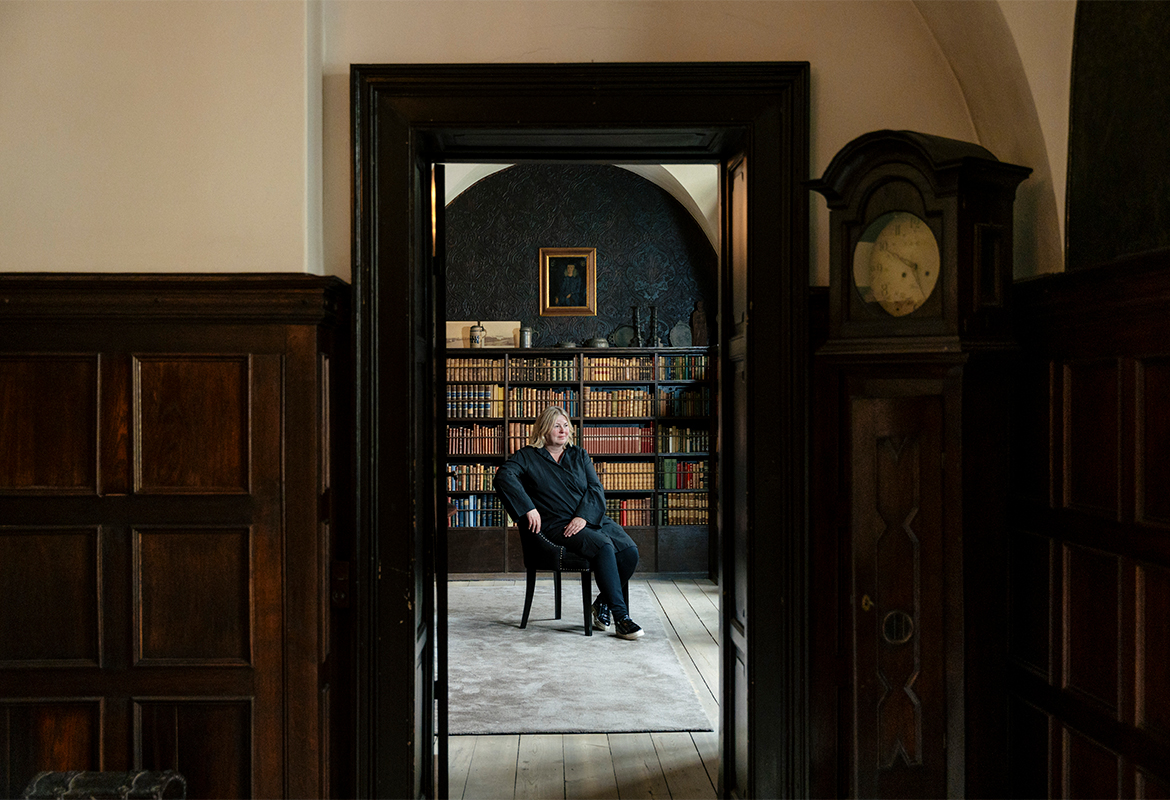 Min svigermor sagde engang til mig: ”Når jeg ikke er her mere, må I ikke flytte rundt på møblerne og inventaret på Lerkenfeldt.” Men da vi lige var flyttet ind, holdt Mikkel og jeg selskab. Da vi havde vasket op, ville Mikkel stille et fad på plads, hvor det plejede at stå. Pludselig vender han sig om mod mig og siger: ”Nå, nej, nu er det jo os, der bestemmer.” Og bevidst placerede han fadet et andet sted. Og det med møblerne kom helt af sig selv, da hovedbygningen senere skulle tømmes for alt indhold forud for restaureringen, der begyndte i 2023. Ingen kan alligevel huske, hvor tingene har stået, når de engang skal på plads igen.