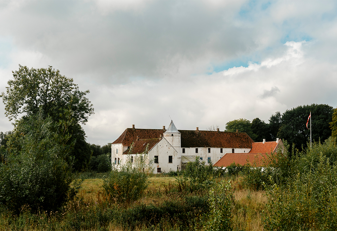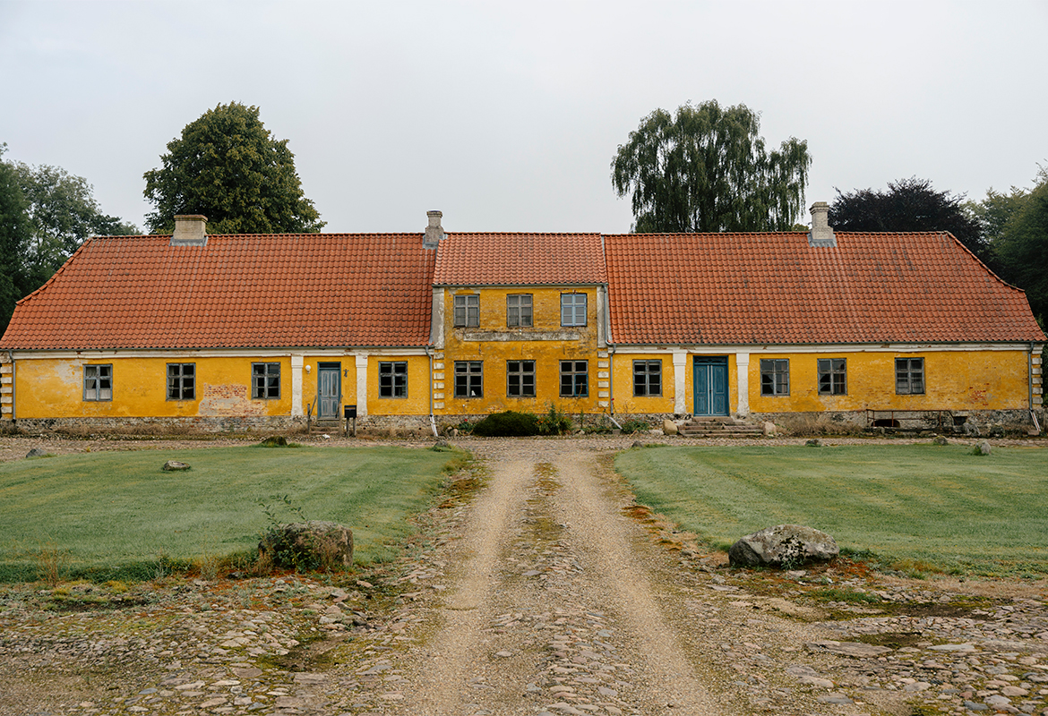 Der lå en blå presenning over taget, og det fik mig til at tænke, at stedet var nødlidende, så jeg fik lyst til at træde til. Jeg lovede mig selv, at hvis jeg en dag kom forbi og kunne se liv dernede, for enden af alleen, ville jeg besøge stedet. En dag skete det, og jeg fik hjertebanken, inden jeg parkerede bilen foran gårdspladsen. Personen, der gik rundt der, viste sig at være fra Slots- og Kulturstyrelsen. Han var i gang med at måle stedet op. Jeg spurgte, hvad formålet var med det, og han nævnte rent hypotetisk, at det kunne være relevant ved salg af ejendommen. Jeg spurgte, hvordan jeg kunne finde ejeren af stedet. ”Du kan bare følge efter hunden der,” sagde han.