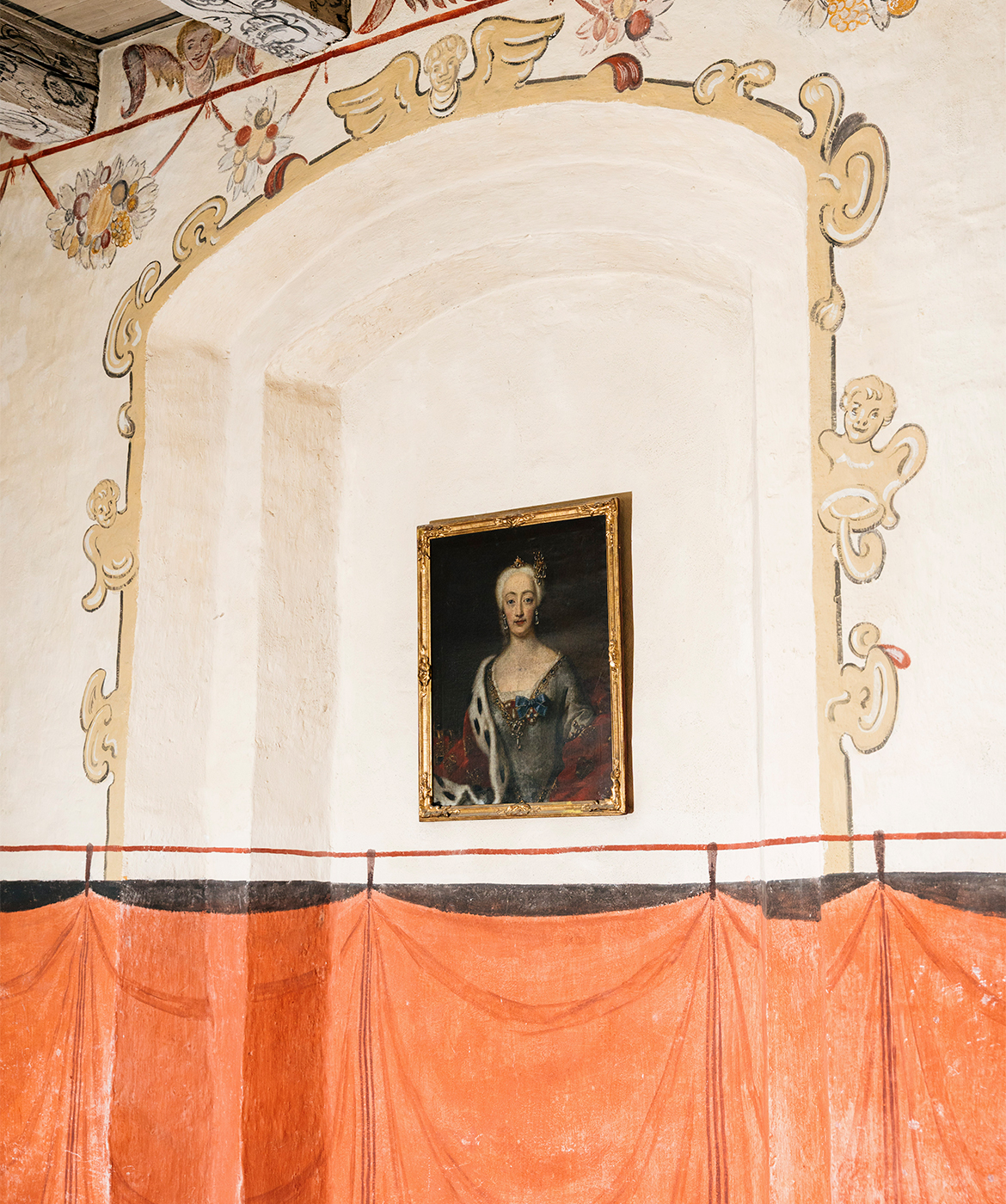 I forhold til kulturarv er Lerkenfeldt en skattekiste, fordi der er så meget, der er autentisk. Der har aldrig været penge til de store restaureringer. Den sidste omfattende restaurering foregik i 1865, længe før der kom regler og restriktioner, og de forskellige tider har sat deres præg på bygningen, hvilket er temmelig unikt. Det betyder også, at intet i hovedbygningen er ensartet, og at der hele tiden dukker uventede ting frem. Ting, jeg ofte inspireres af i interiørfirmaet, jeg har startet her. Gamle tapeter har inspireret mig til lampeskærme, ligesom en blå lampe dannede grundlag for farven i en sengetøjskollektion, jeg har designet.