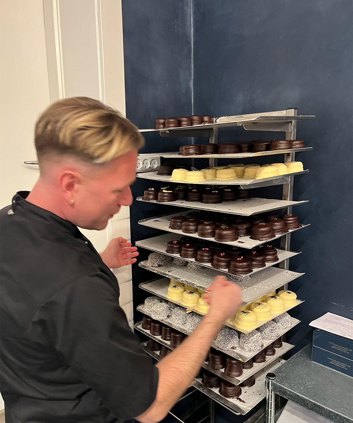 Tina så ret hurtigt, at jeg var god med hænderne. Det lå i familien. Min mor var kreativ, min mormor også. Jeg fik lov at lave flere og flere ting, og pludselig var jeg med i den daglige produktion. Alt, hvad jeg gav i gaver som teenager, var støbt eller modelleret i chokolade.