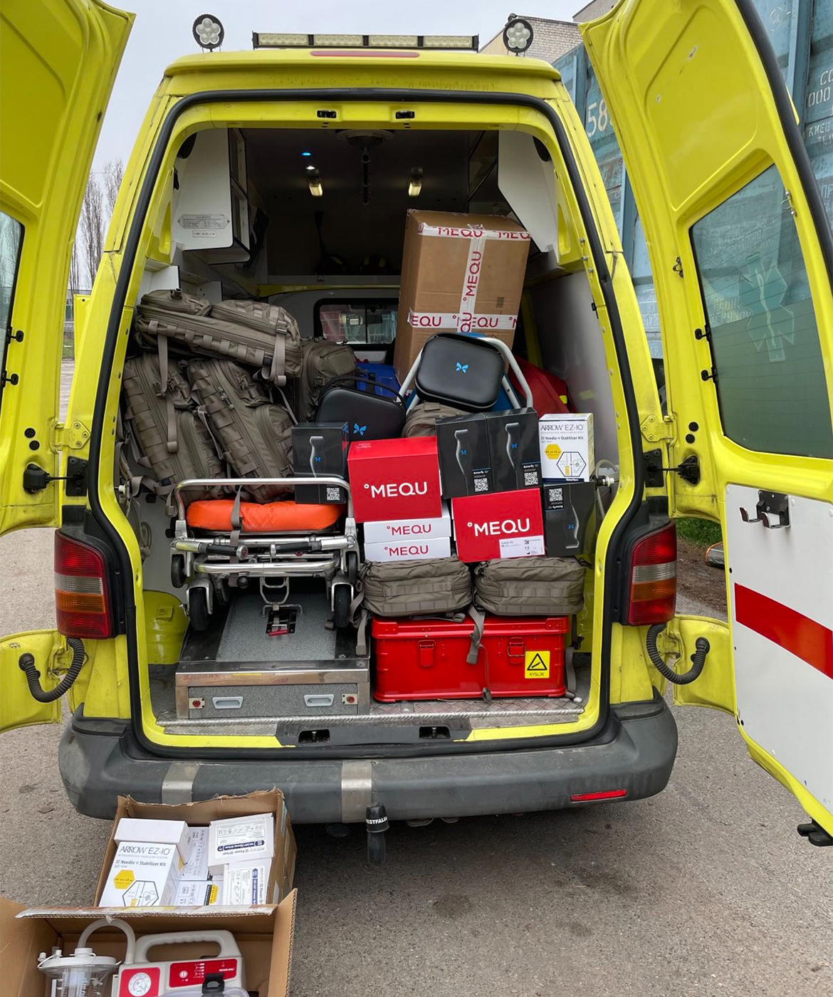Typisk leverance: rygsække, mobile ultralydsscannere, blodvarmersystemer, kirurgisk udstyr.