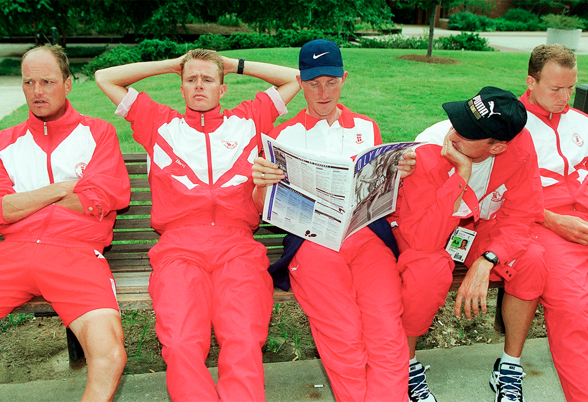 Atlanta under OL 1996: Bjarne Riis, Rolf Sørensen, Brian Holm, Jesper Skibby og Lars Michaelsen. Foto: Jens Nørgaard Larsen/Nf/Ritzau Scanpix
