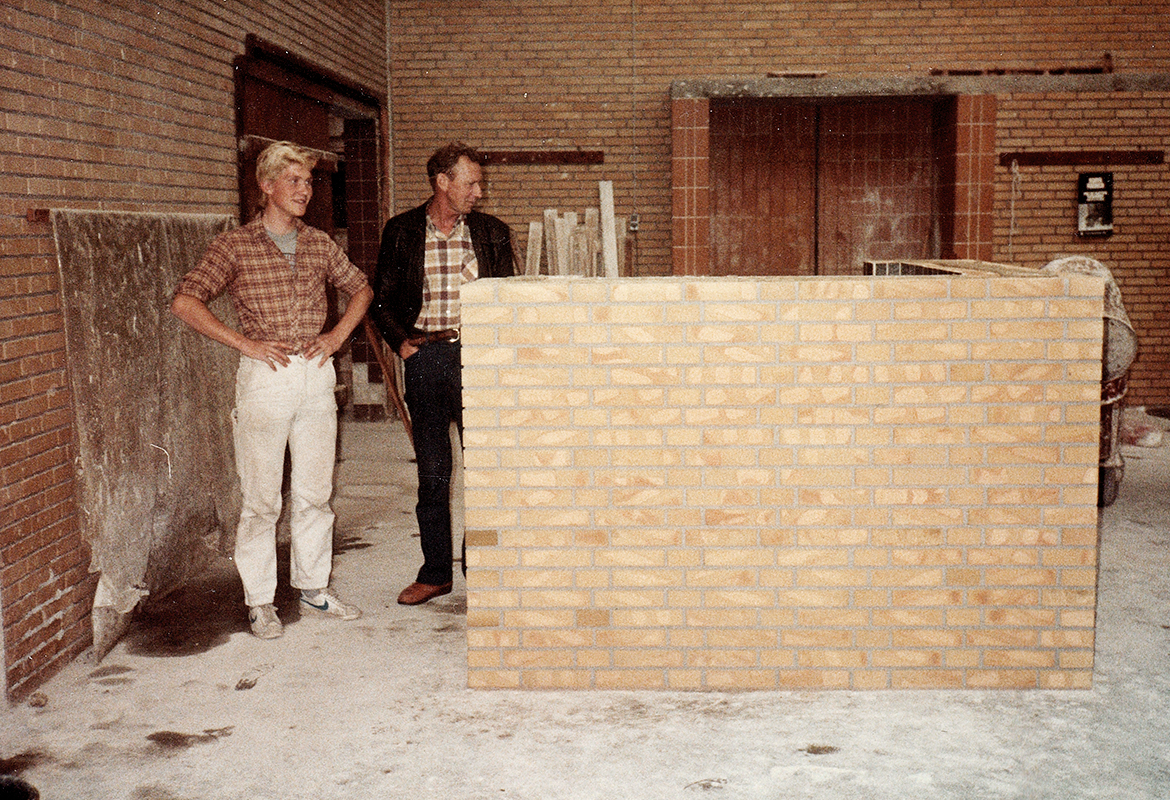 Svendeprøve på Murerskolen i Rødovre, 1982, efter en eksamen, der blev forsinket et halvt år på grund af cykelløb i læretiden. Foto: Privat