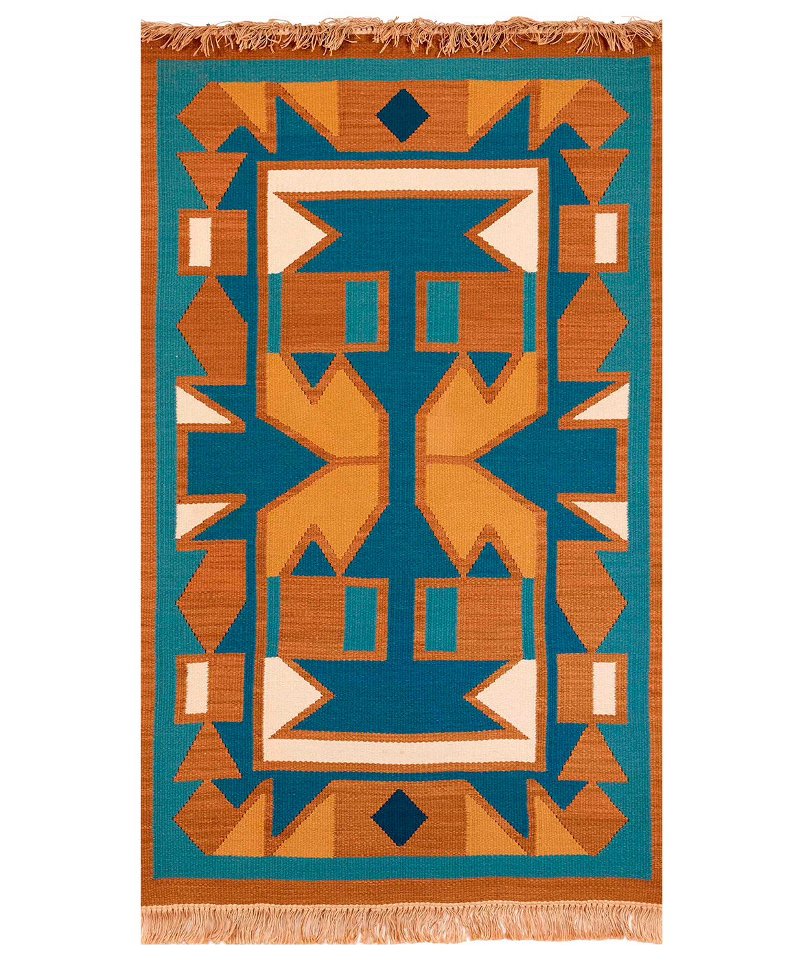 Anna Thommesen: ’Blåt – brunt – hvidt’, 1952. Vævning, plantefarvet uld, 183 x 117 cm, Holstebro Kommune, Rådhuset. Foto: Ole Mortensen