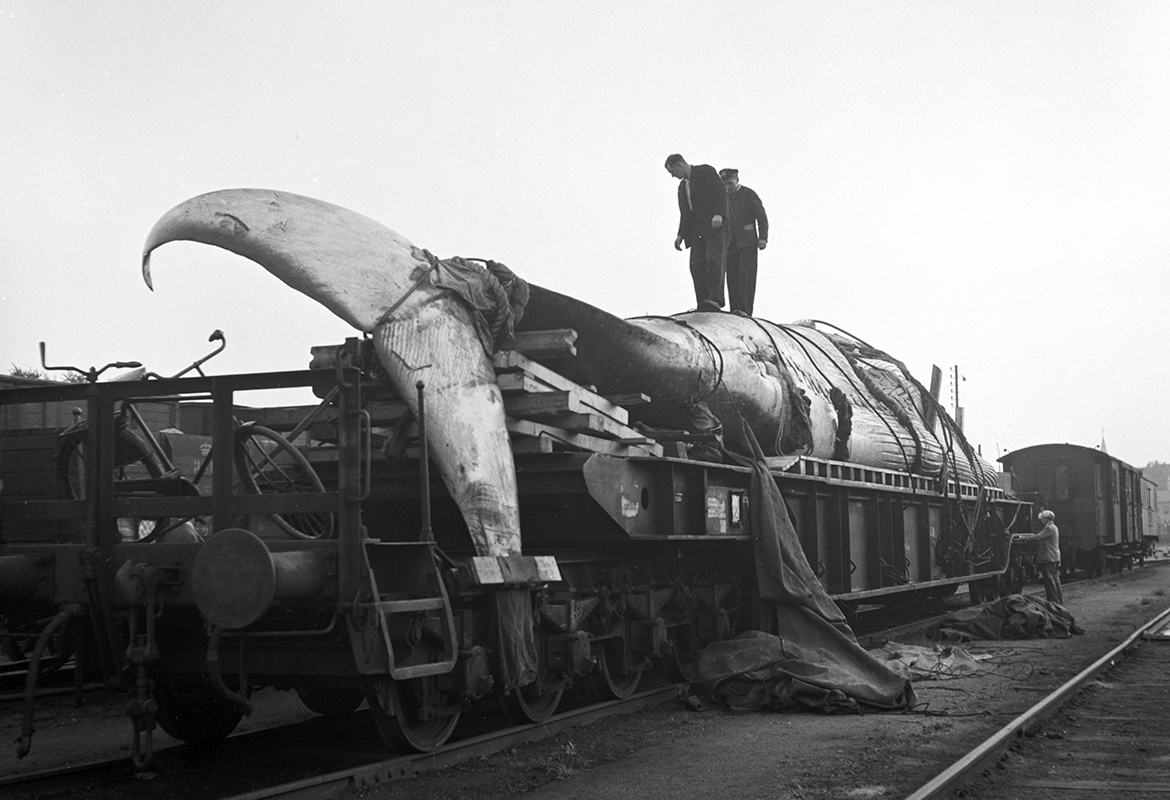I vinter strandede to kaskelothvaler i Nordjylland og blev sendt tilbage til havet. I 1951 var behandlingen noget anderledes, da en 22 meter lang finhval, der var fanget med harpun ud for Norges kyst, blev fragtet med tog hele vejen til Østerport Station. Her blev den balsamerede hval, der fik navnet Mrs. Harøy, udstillet i et telt ved Knippelsbrogade for at forbløffe københavnerne. Grosserer Leif Søe-gaard stod bag med assistance fra Zoologisk Museum. Mrs. Harøy fortsatte turneen rundt til 60 europæiske byer, og Søegaard sendte i 1954 hvalen videre med skib til Brooklyn, hvor den under en udstilling på Coney Island gik i brand og for anden gang endte sine dage.