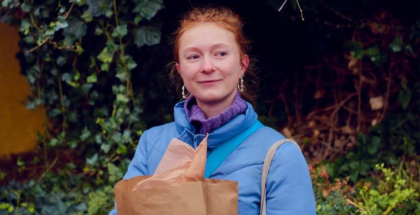 På vej hjem fra arbejde skulle jeg lige hente nogle blomster, så vi har noget at pynte op med derhjemme. Jeg er lige flyttet til Rødovre fra Vordingborg sammen med en veninde. Vi arbejdede sammen i Føtex i Nykøbing Falster, nu arbejder vi i Føtex på Nørrebro i København, mens vi holder sabbatår. Hun arbejder i vinafdelingen, jeg er i kolonial. Vi er lidt af en pakke-deal, vi to.