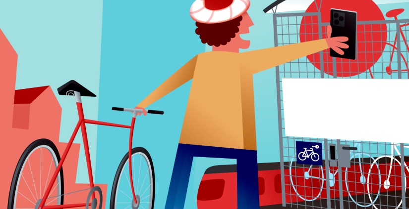 Fra maj skal du bruge DSB’s app: Gå ind i appen, scroll ned til knappen ’Parkér din cykel’, klik på den, og find din station på kortet. Når stationen er fundet, kan du se flere røde ikoner med en cykel og et bogstav.