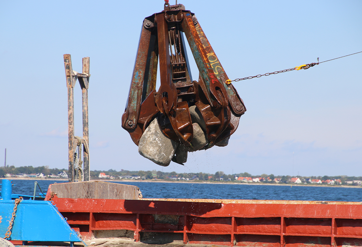 Når man skal etablere et stenrev, kræver det tegninger, forundersøgelser og scanninger af havbunden. Har man mange penge, kan man købe sten i Norge og få dem sejlet hertil. Det havde vi ikke. Ukraine-krigen fik priserne på materialer til at stige, og pludselig rakte bevillingerne ikke så langt. Så vi begyndte at indsamle sten via donationer. Entreprenører, VVS-firmaer og byggeselskaber ringede, når de havde store sten i overskud. Frivillige stillede arealer til rådighed, hvor vi kunne samle dem.