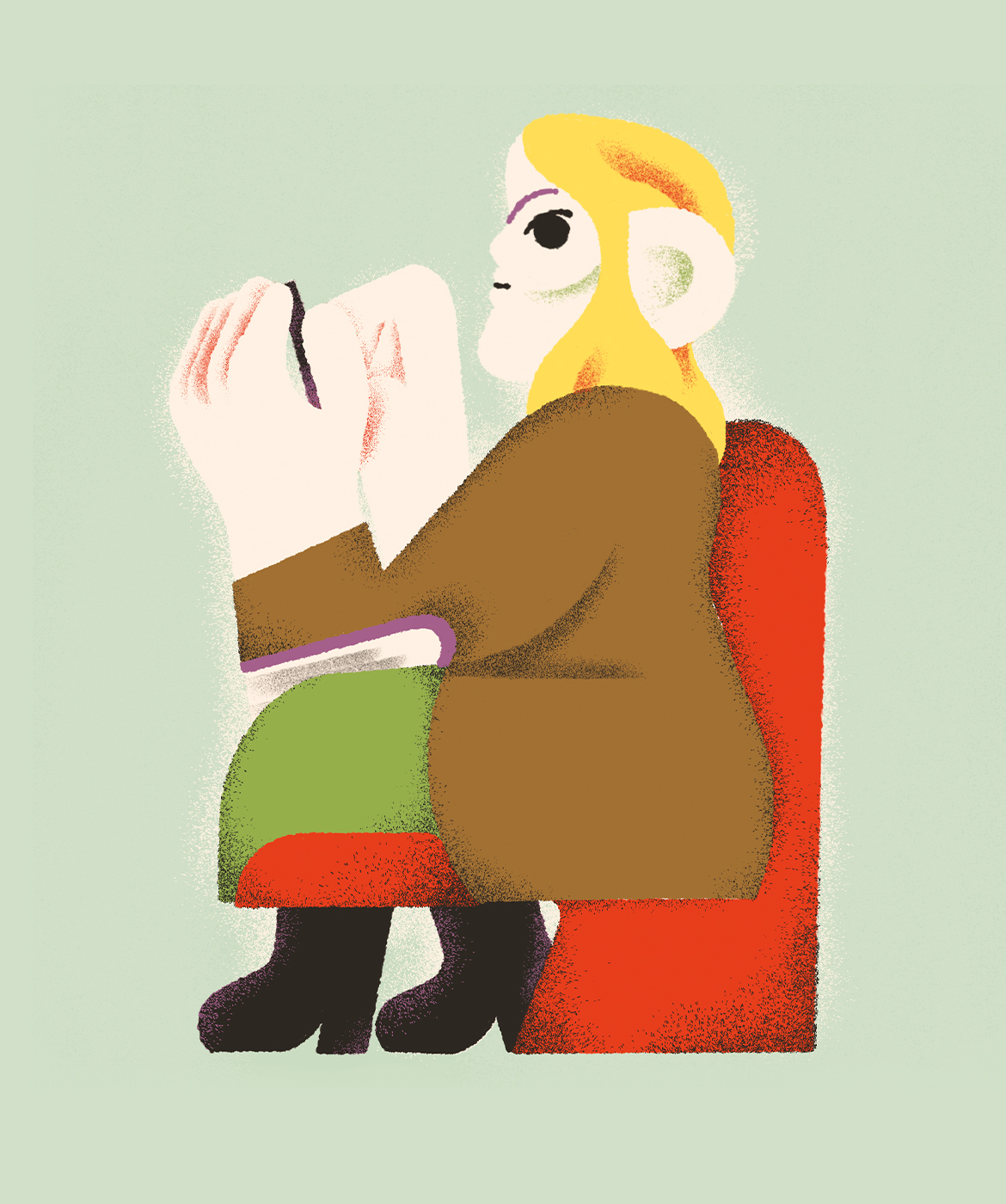 Men hun læser ikke, ser i stedet noget på sin telefon.