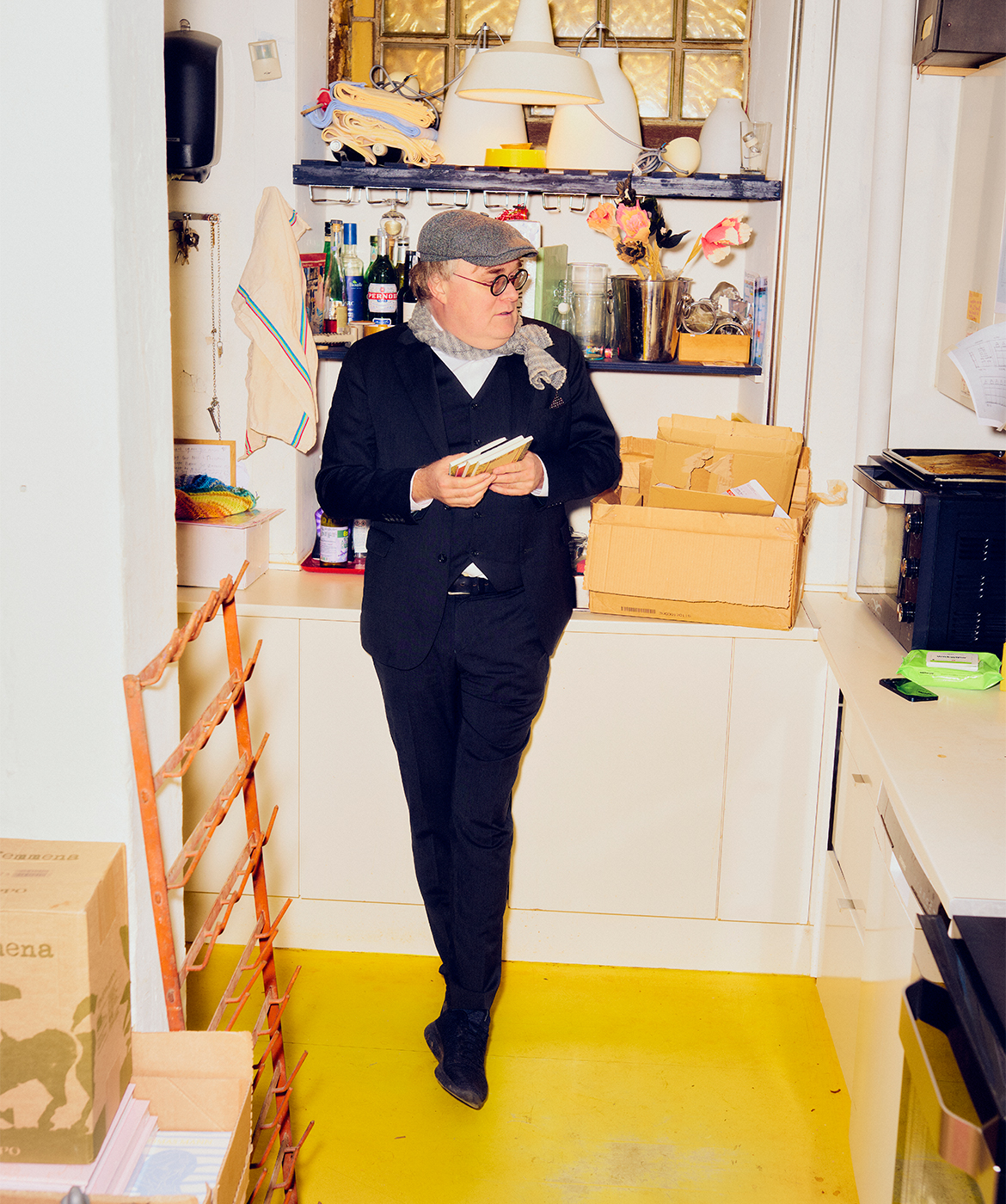 ”Lige nu sover jeg hele tiden, fordi jeg er syg, men tidligere har jeg altid syntes, at det var vildt kedeligt at sove. Jeg vil op at lave noget, lære noget, gøre noget for nogen, skrive musik, skrive bøger, arrangere koncerter, komponere, alt muligt. Jeg har 10.000 ting, jeg gerne vil, helst på samme tid. Sådan har jeg altid haft det. Det er ikke tilfældigt, at jeg har udgivet 75 plader som solist i en alder af 51 år. Det, du skal vide om mig … eller det ved jeg ikke, om du skal, men nu siger jeg det, og så kan du vurdere det …,” siger han og skal til at levere en dybere pointe, da han spotter sin frisør Rodeo City på den anden side af gaden og glemmer, hvad han var ved at fortælle: